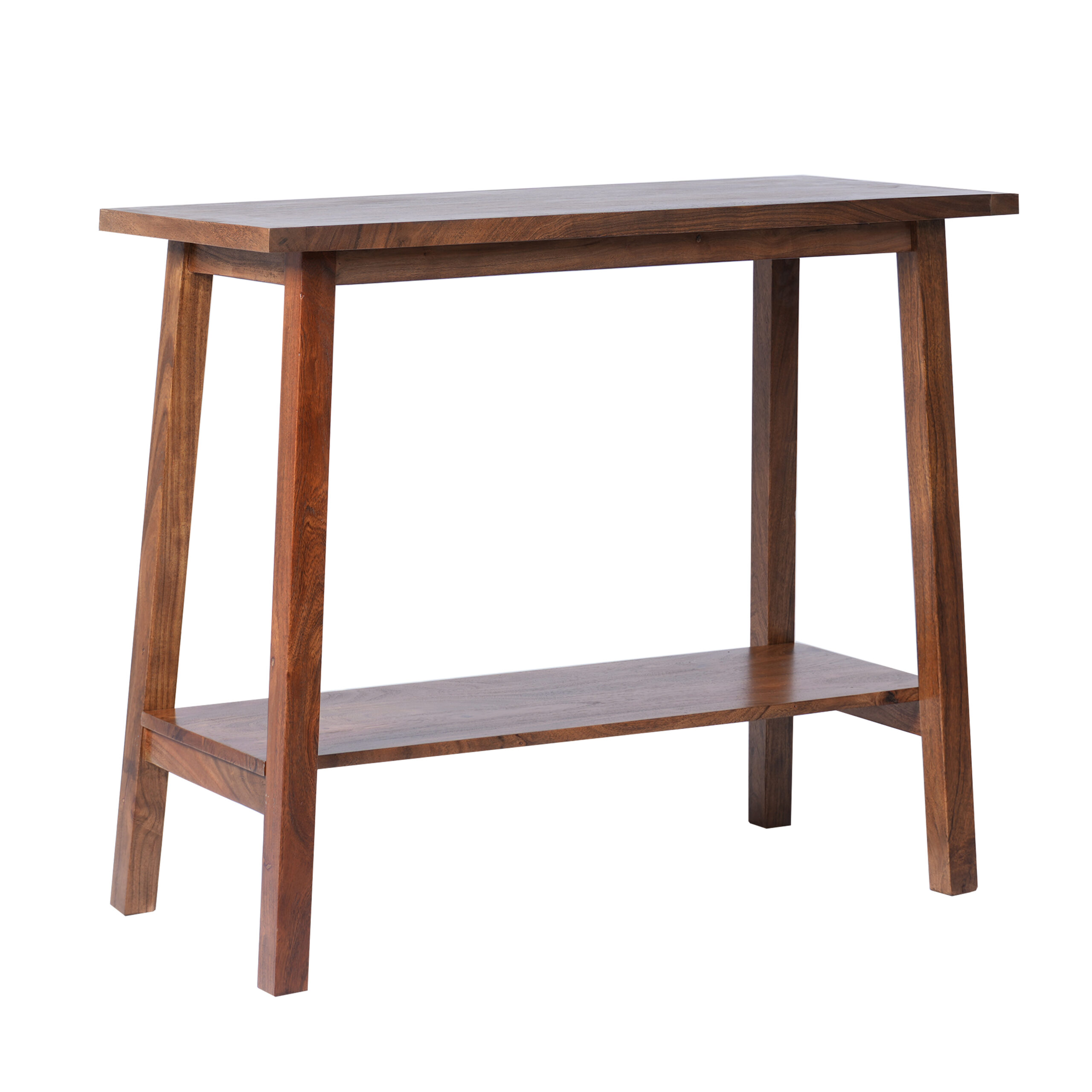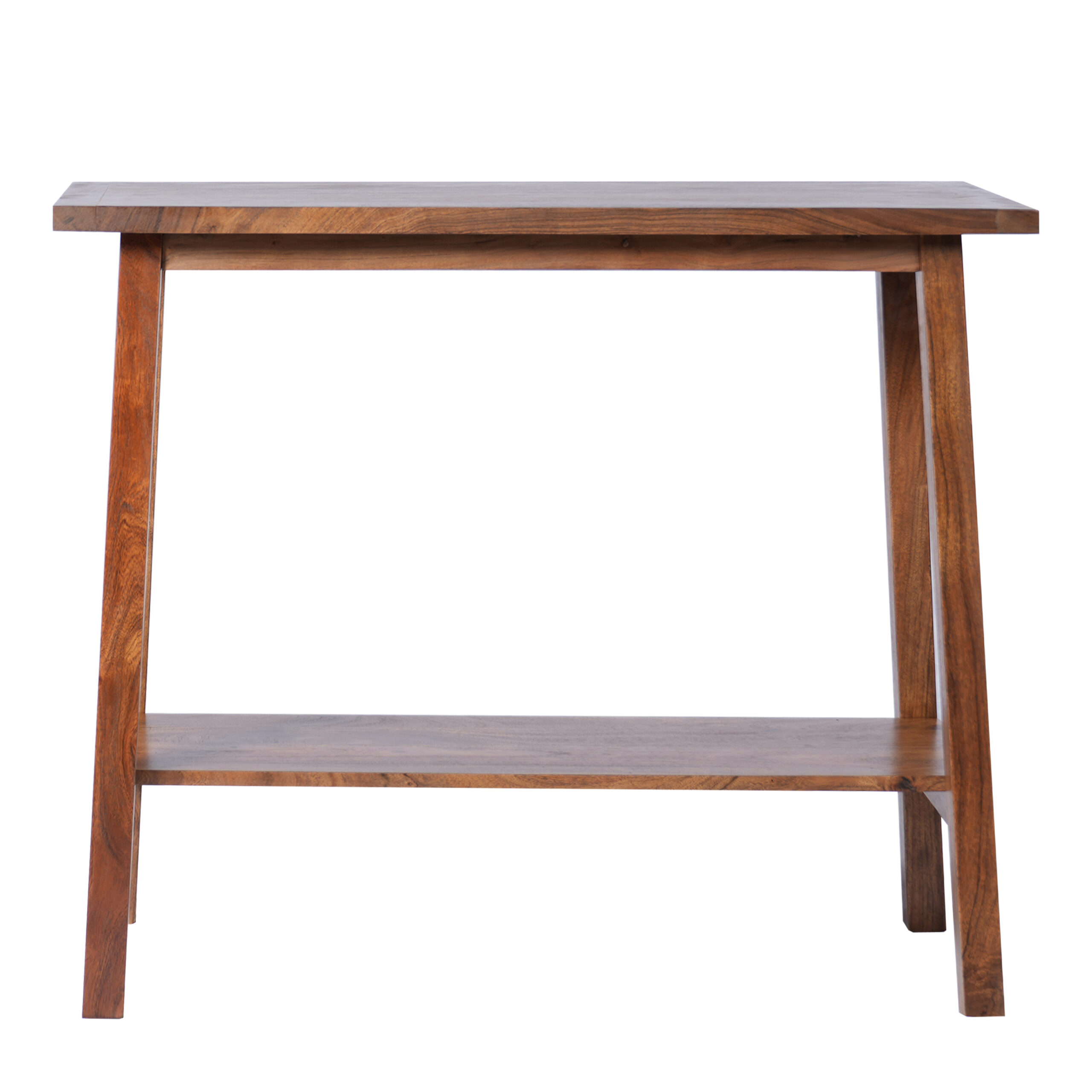 The Amara Console Table offers practical storage and casual style. Available in a washed walnut finish, crafted from solid acacia wood.