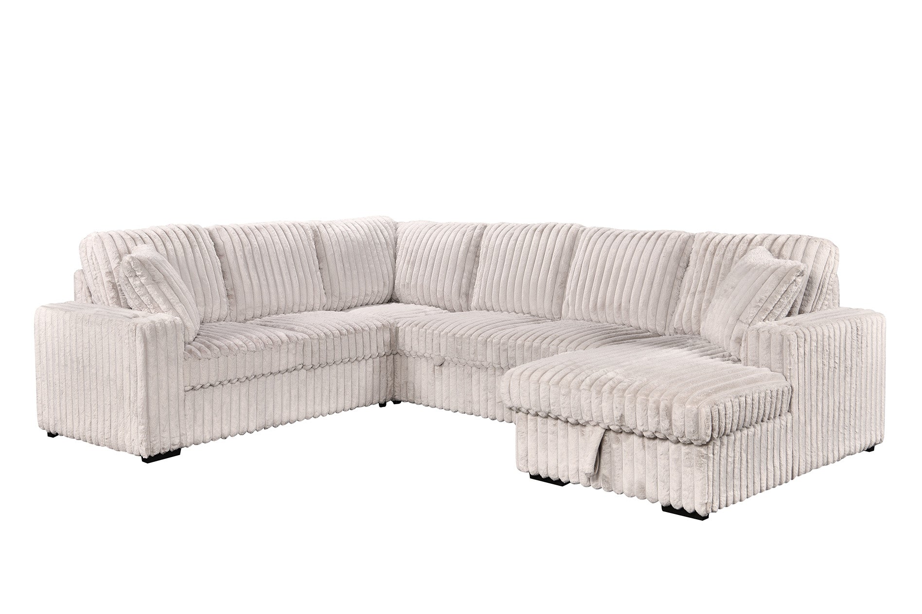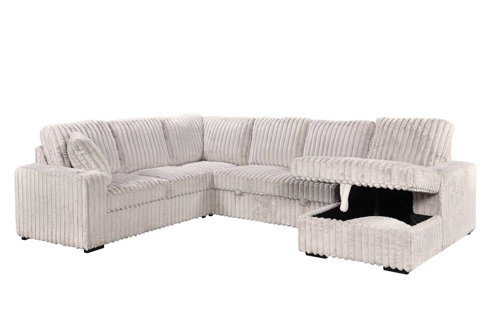 This multifunctional sectional easily converts into a pull-out sleeper, providing a convenient solution for overnight guests. Built-in storage within the chaise keeps blankets and essentials tucked away, while integrated cupholders add everyday convenience for relaxing or entertaining.