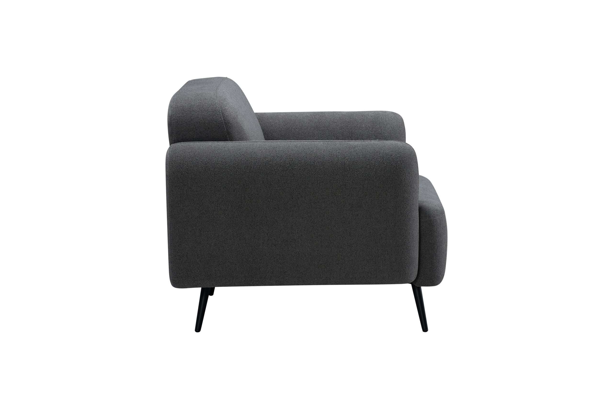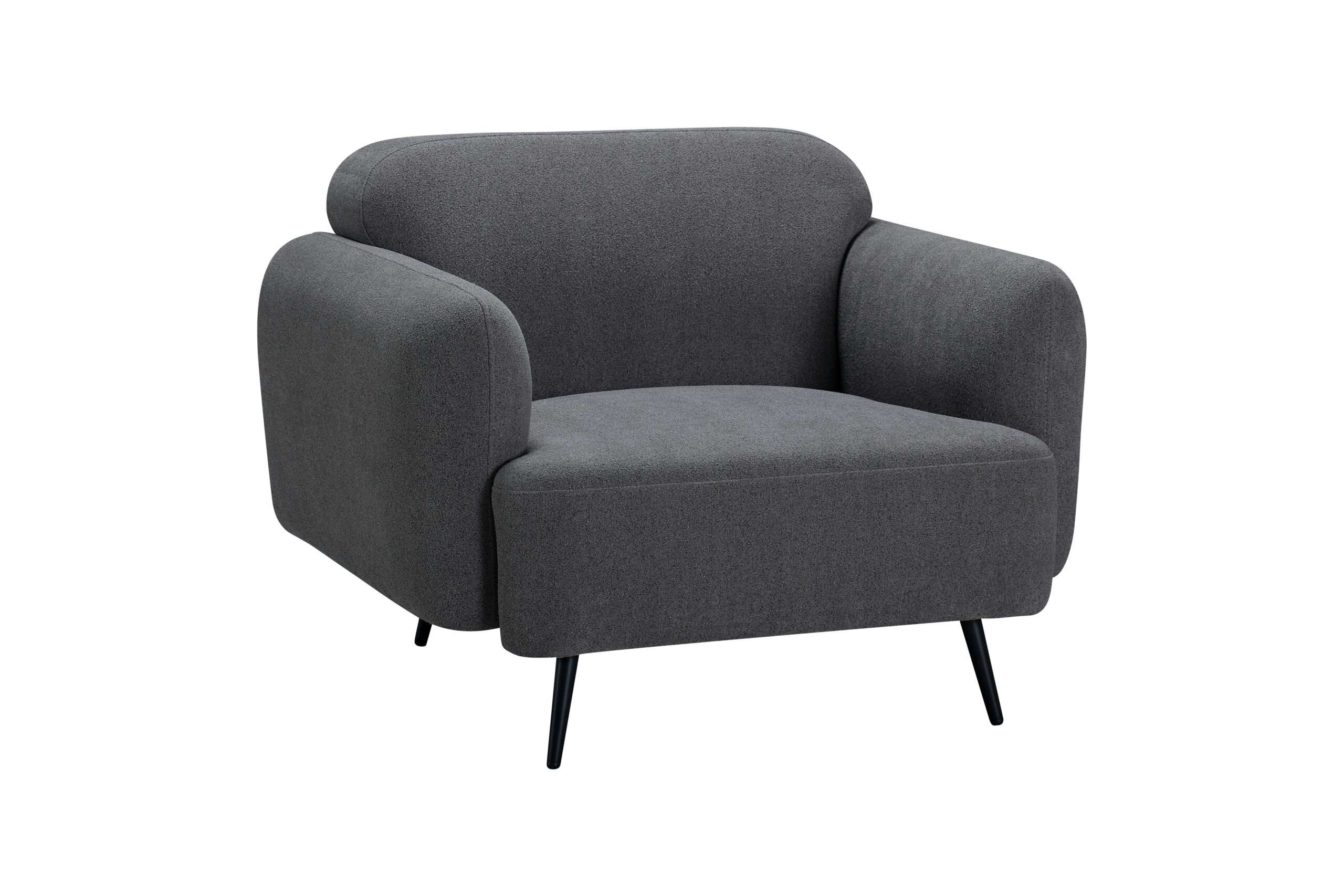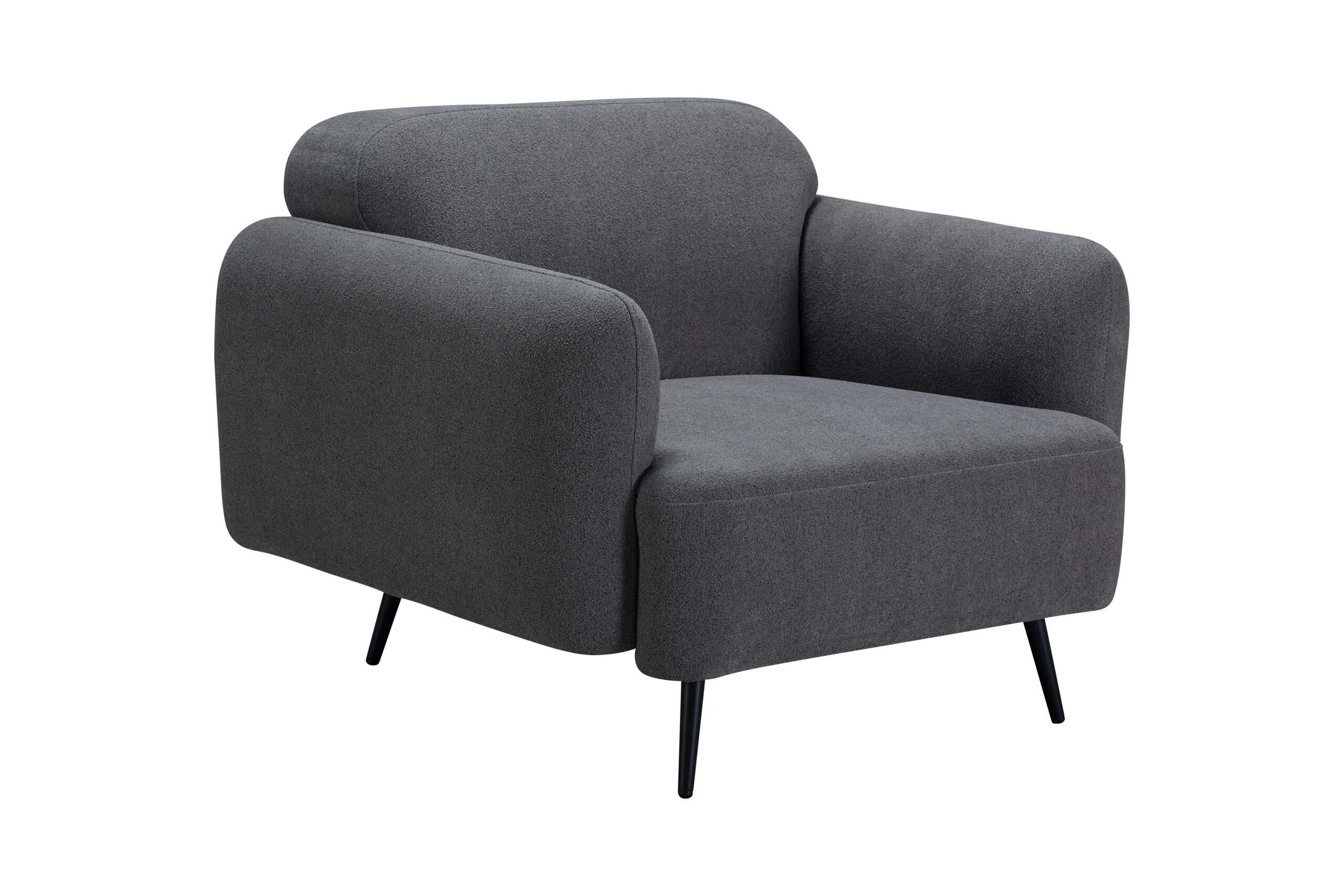 Its gently curved back and sculpted arms create a cozy, enveloping feel, making it the perfect spot to unwind with a book or enjoy conversation. The tailored seat cushion provides supportive comfort, while sleek, tapered legs add subtle elevation and visual lightness.