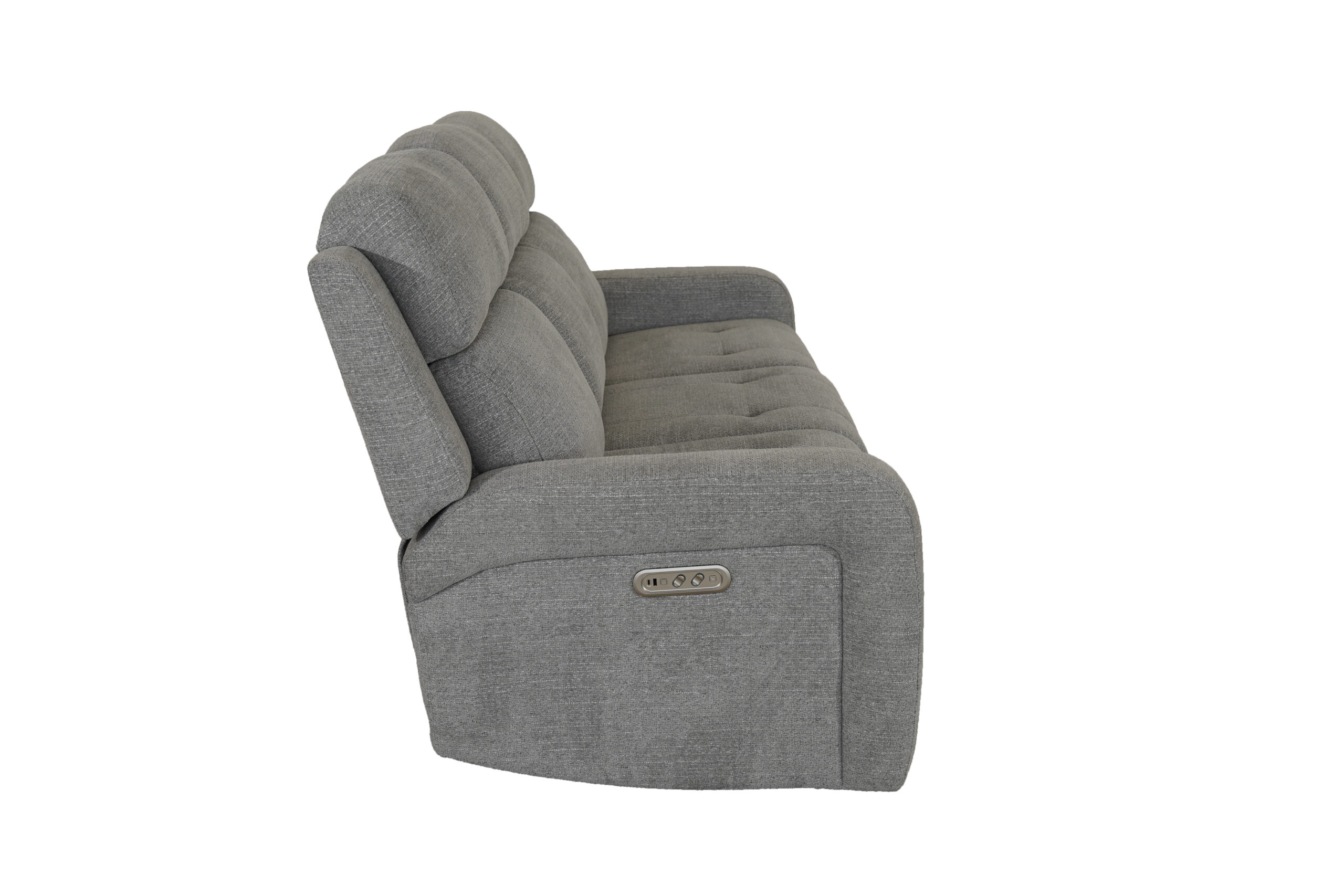 Designed to bring both comfort and convenience into your living space, the Mina Power Reclining Sofa offers a clean, contemporary look in a versatile fog-grey upholstery. Its soft, textured fabric pairs effortlessly with a wide range of interiors, while generously padded seats and supportive high backs create a relaxing place to unwind.
