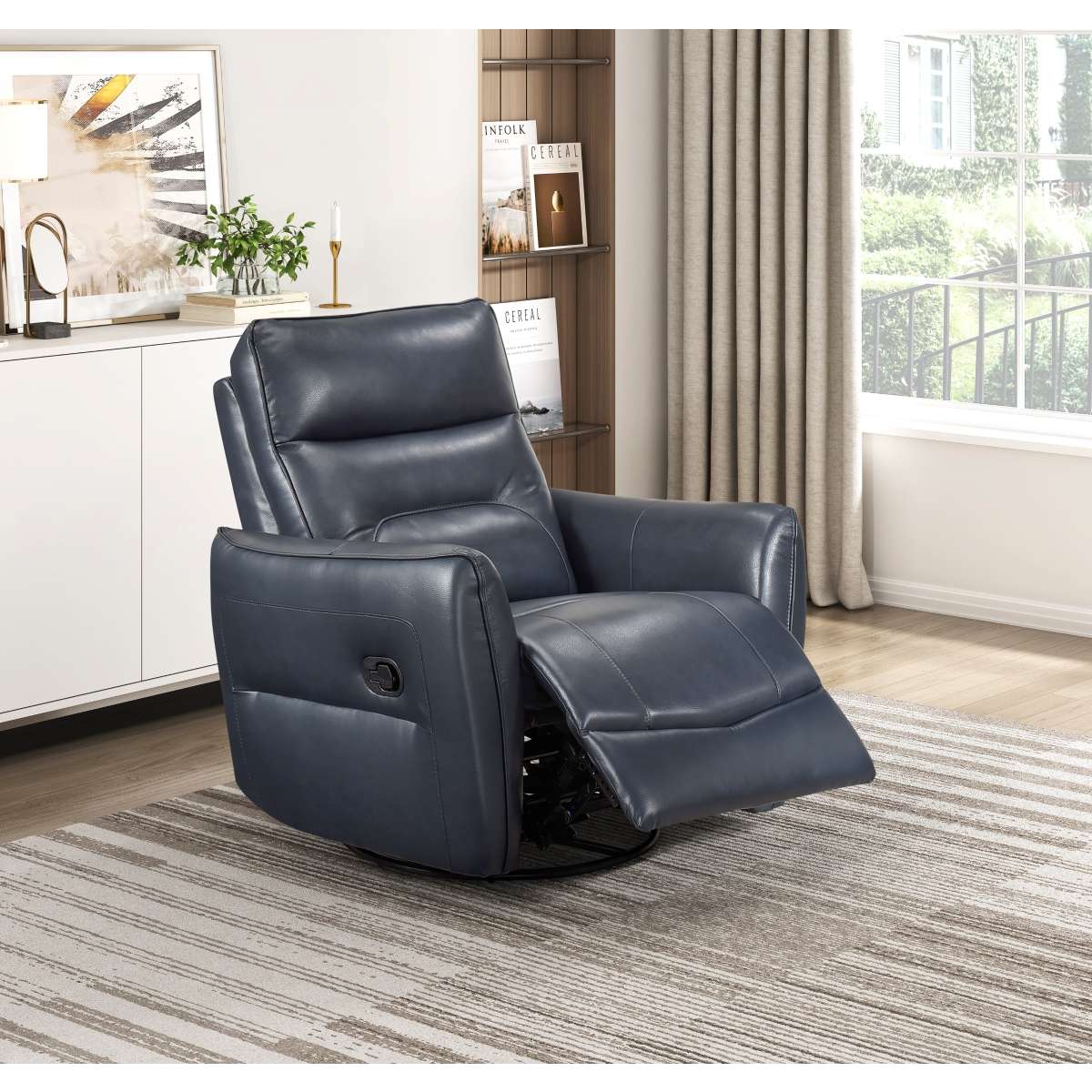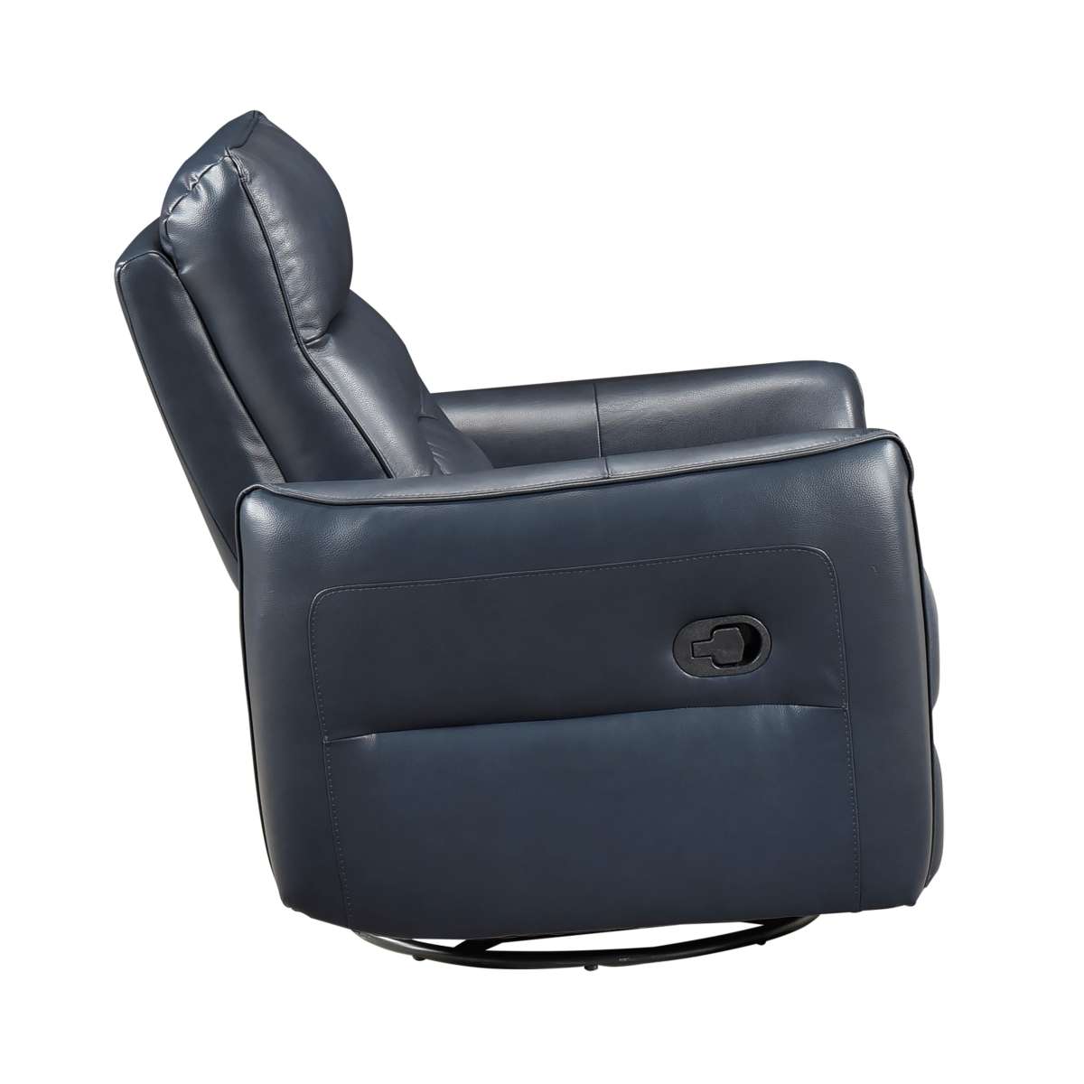 Indulge in ultimate relaxation with this luxurious top grain leather swivel glider recliner. Designed for both comfort and style, this recliner features a robust solid wood and plywood frame with a metal reinforced seat, ensuring durability and stability. The high-density foam padding over pocket coils provides exceptional support, while the top grain leather where the body touches offers a premium feel. Enjoy effortless reclining with the easy-to-use pull-handle mechanism, along with a smooth 360-degree swivel and gentle gliding motion for complete relaxation. The attached back and seat cushions maintain a sleek profile, and with a 300lbs weight capacity, this recliner is built for lasting comfort.
